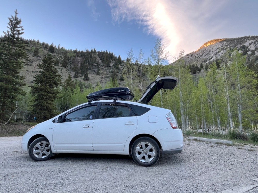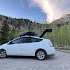 I have a 1200 watt inverter wired up to my starter battery. Turning on the car and powering on the inverter gives me 1200 watts of AC power, and because the Prius is a hybrid, the engine only runs when the hybrid battery needs a boost.